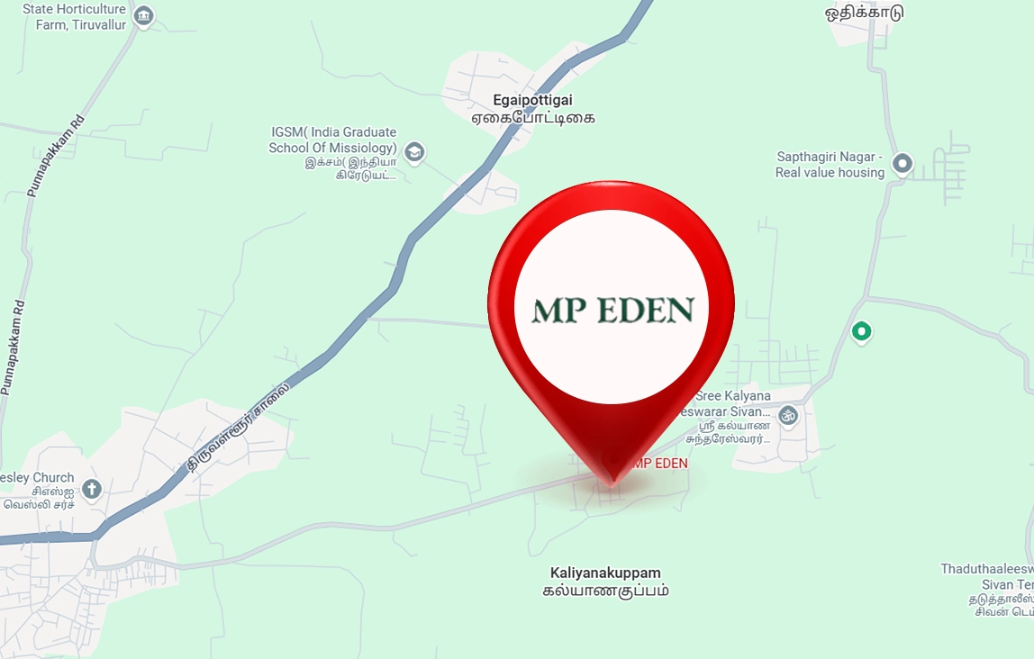 In a location that blends suburban peace with urban accessibility, MP Eden stands apart. Stay connected to key destinations while enjoying the quiet charm of Kaliyanakuppam.