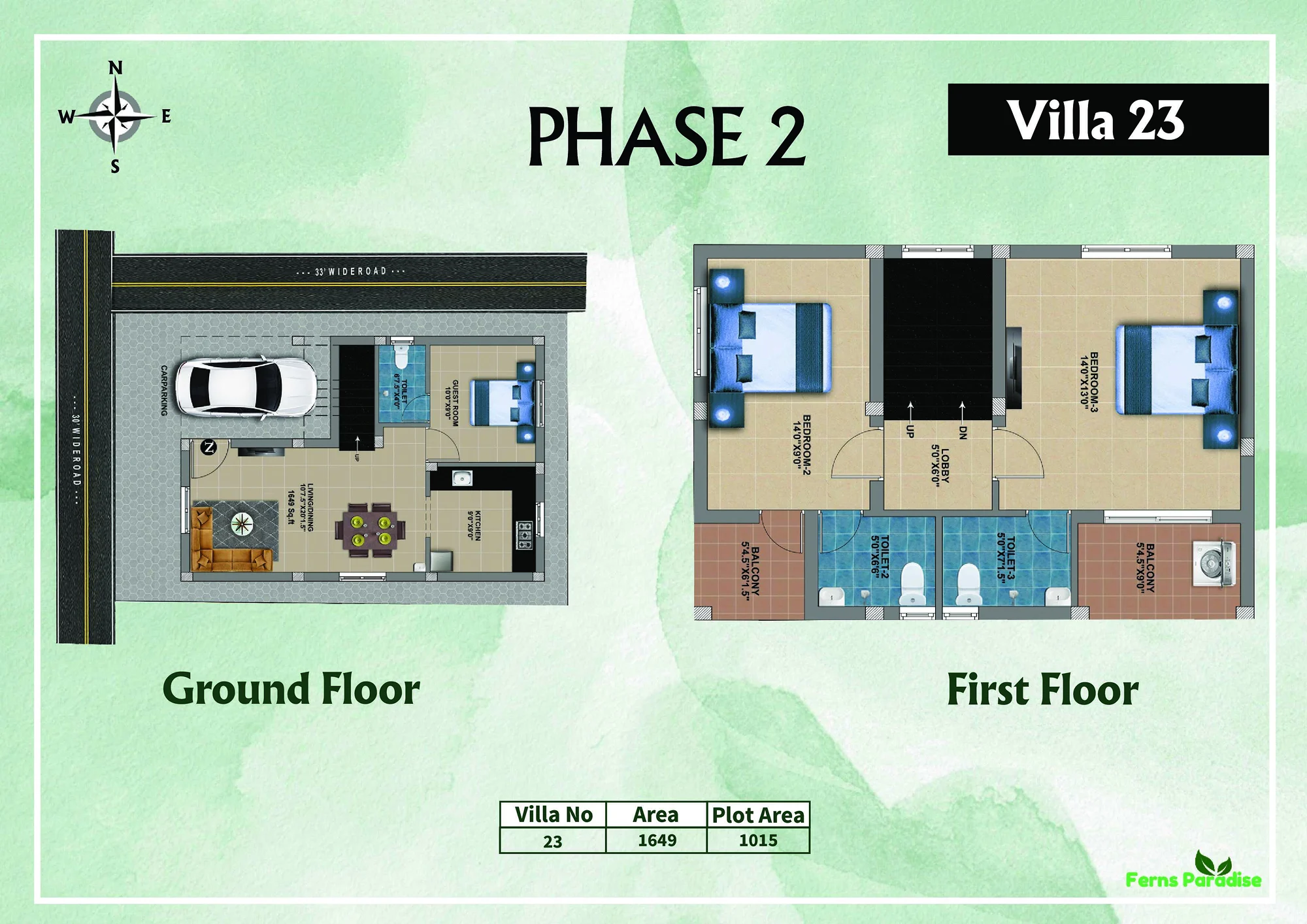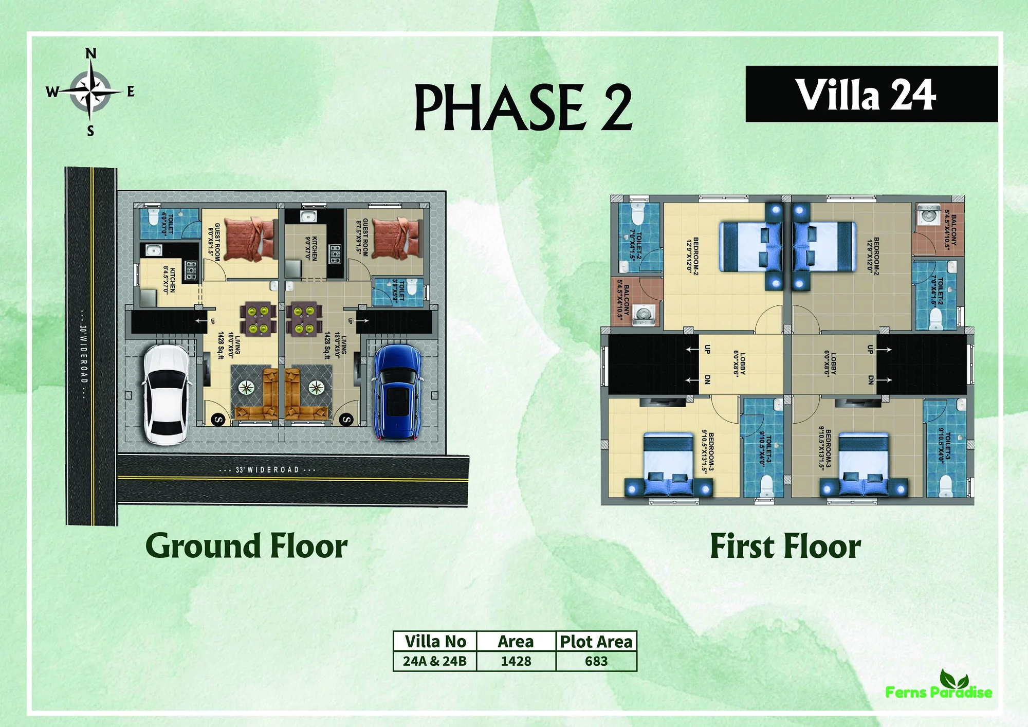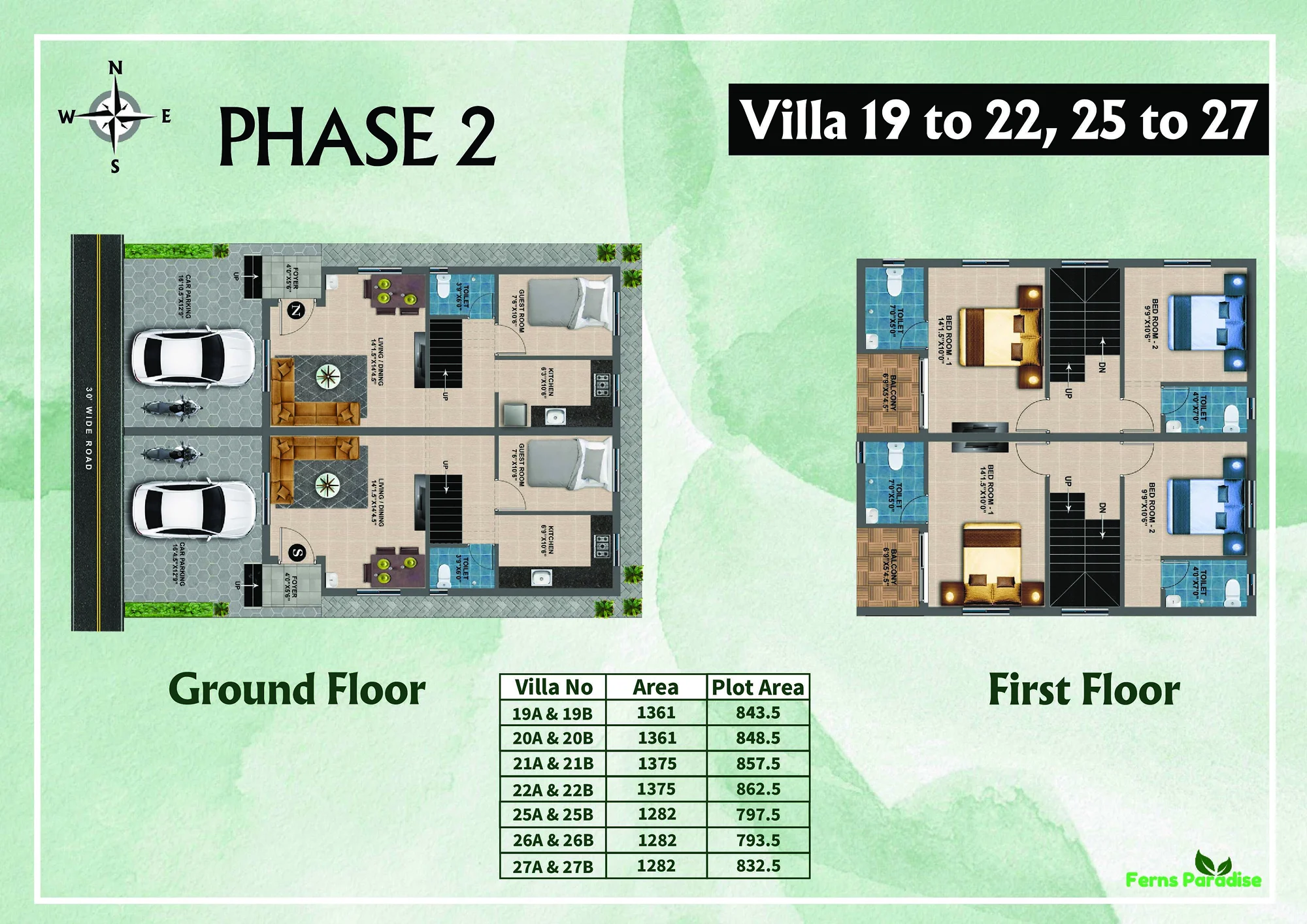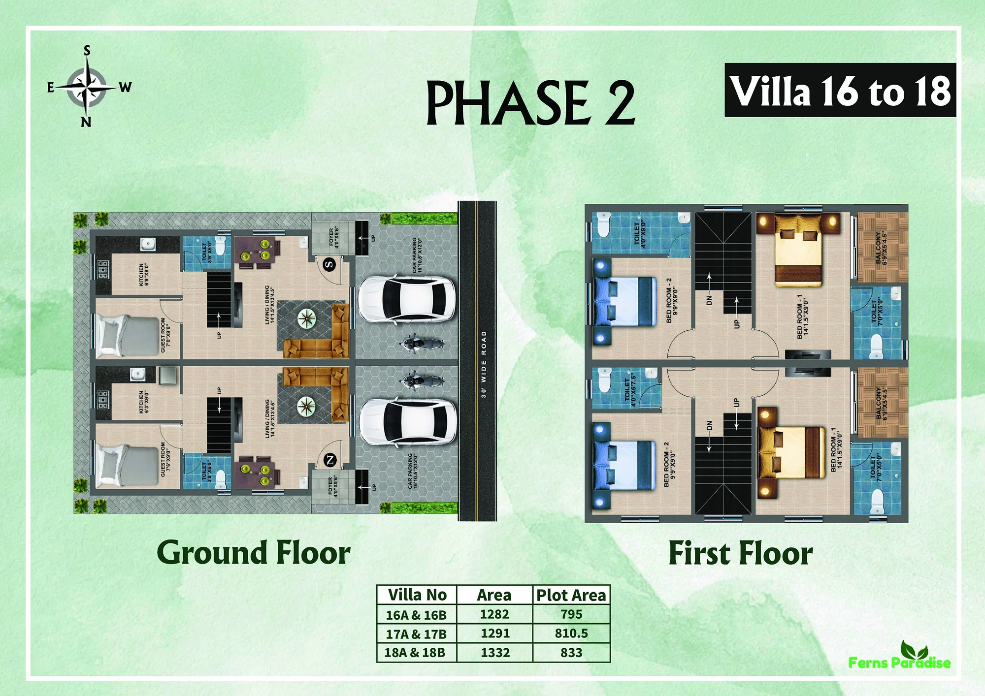 Villas range from about 1518 sq. ft to 1656 sq. ft.