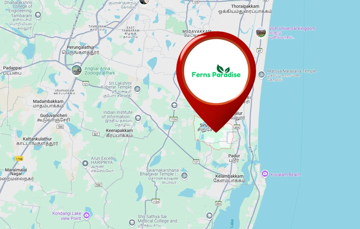 The MP Ferns Paradise is well connected via OMR and close to the Siruseri-Pudupakkam area and schools.