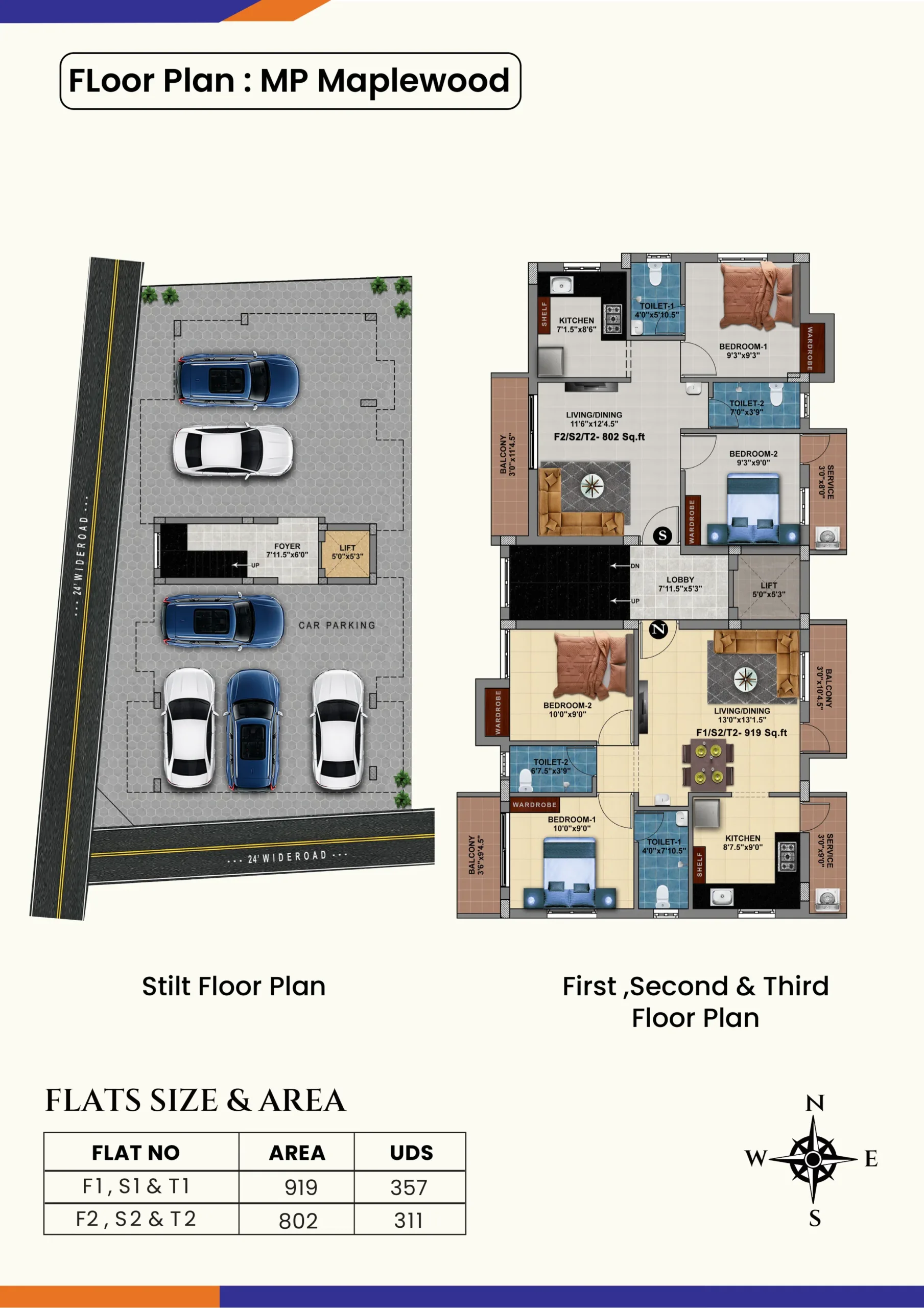 Apartments like MP Maplewood are built with specifications include vitrified tile flooring, quality fittings, and a well-thought-out design for comfort and durability.